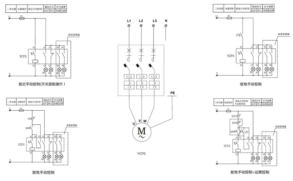 YCPS控制與保護開(kāi)關(guān)電器具有控制與保護功能集成化,結構模塊化,體積小,對環(huán)境污染的防護等級高,安裝使用及維修操作方便等一系列優(yōu)點(diǎn)。特別適用于現代化建筑中的泵、風(fēng)機、空調、消防照明等電控系統;冶金、煤礦、鋼鐵,石化、港口、船舶、鐵路、紡織等領(lǐng)域的電動(dòng)機控制和保護;電動(dòng)機控制中心(MCC)尤其是智能化電控系統或高分斷能力的MCC(要求Ics 達到80KA 的配電控制系統);工廠(chǎng)或車(chē)間的單電機控制與保護;以及遠程控制照明系統等。