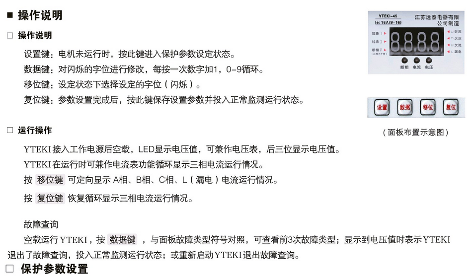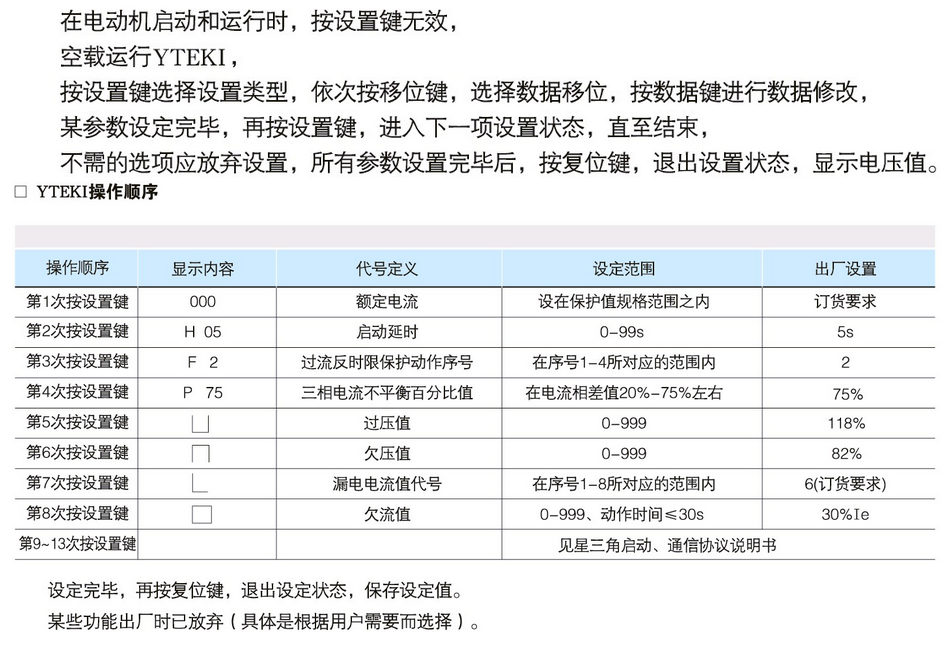 售后支持 Aftermarket|YTEKI控制與保護開(kāi)關(guān)-參數設置|烏魯木齊揚力電器有限公司